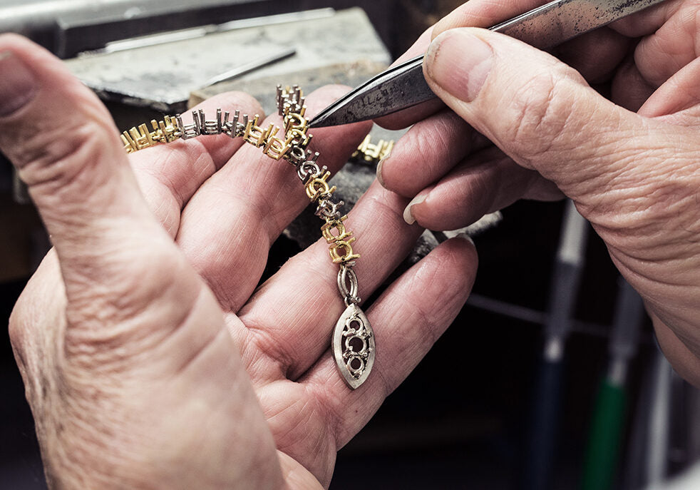Following your approval of the design, size and selection of metal, stone and finishes, the master craftsmen begin to hand make your new piece of jewellery. Carefully and methodically, your unique design comes to life.